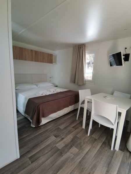 i villini in legno sono la soluzione ideale per ospitare 2 o 3 persone. Sono composti da una camera matrimoniale, una zona giorno dove è presente un letto singolo nel 3 posti letto, un angolo cottura attrezzato, tv in camera, servizi privati con box doccia, veranda arredata.